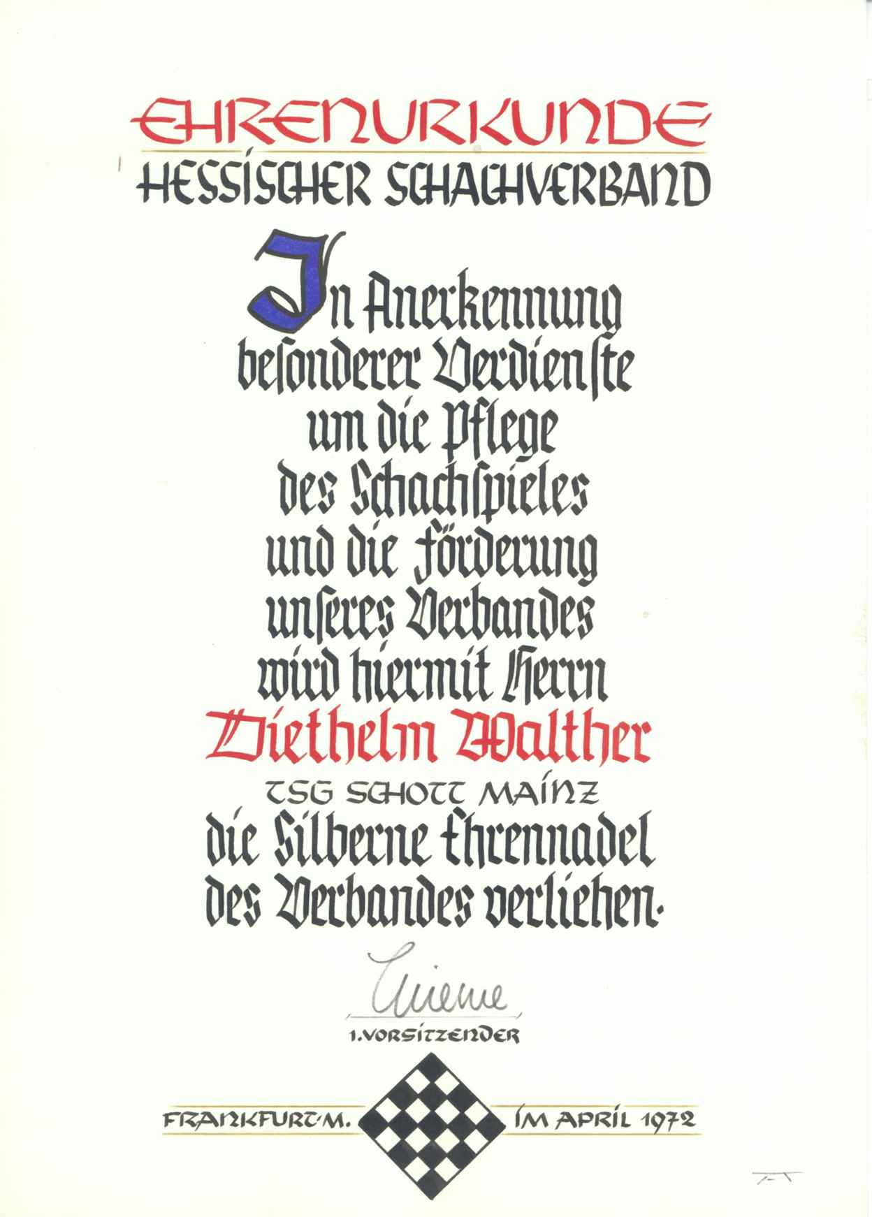 | 1972 | Diethelm Walther | Urkunde |
