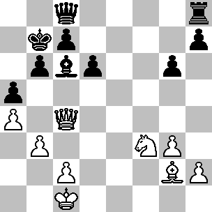 Beginnend mit einem Damenopfer (Dxc6+)setzt der Spieler mit den weißen Steinen in fünf Zügen schachmatt. Wie lautet die vollständige Lösung?